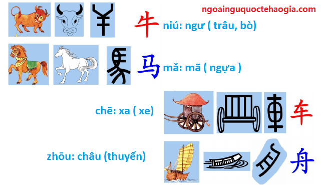 Để chỉ con vật như trâu bò và ngựa, cỗ xe và thuyền người ta vẽ ra rồi sau dần cải tiến thành chữ